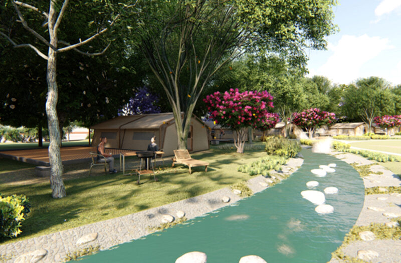 交旅處說,北野公園基地面積約12.95公頃,全區共規劃77帳露營空間,包含田野露營區(自搭帳)43帳、野奢露營(懶人免搭帳)19帳、露營車8帳及車宿7帳,園區除保留原有林地與自然景觀外,也規劃星空劇場、北野廣場,未來可作為北野祭活動舉辦場地,並結合荖濃溪設置親水設施,提供民眾享受多元舒適的戶外休憩體驗。