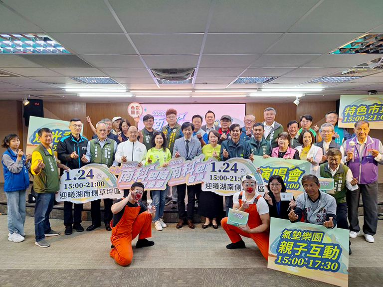 為持續擴大南科迎曦湖周邊觀光動能,並帶動地方產業與旅宿市場,臺南市政府觀光旅遊局與國家科學及技術委員會南部科學園區管理局(以下簡稱南科管理局)共同合辦「2026南科迎曦音樂節」,今(16)日舉辦宣傳記者會,現場由臺南市葉澤山副市長、南科管理局鄭秀絨局長、觀光旅遊局林國華局長、許至椿議員、陳碧玉議員、沈震東議員等本人、陳亭妃立委、林俊憲立委、邱莉莉議長、余柷青議員、楊中成議員、蔡淑惠議員、李啟維議員、蔡宗豪議員、周嘉韋議員、盧崑福議員、蔡筱薇議員、陳怡珍議員服務處代表、新市區公所張榮哲區長、臺南在地公協會代表及里長等貴賓蒞臨共襄盛舉。「2026南科迎曦音樂節」將於1月24日下午3點至晚間9點,在新市區迎曦湖南側草坪區盛大舉行,期望透過音樂節活動,邀請民眾走進新市,體驗結合音樂、親子、觀光與在地產業的音樂節。