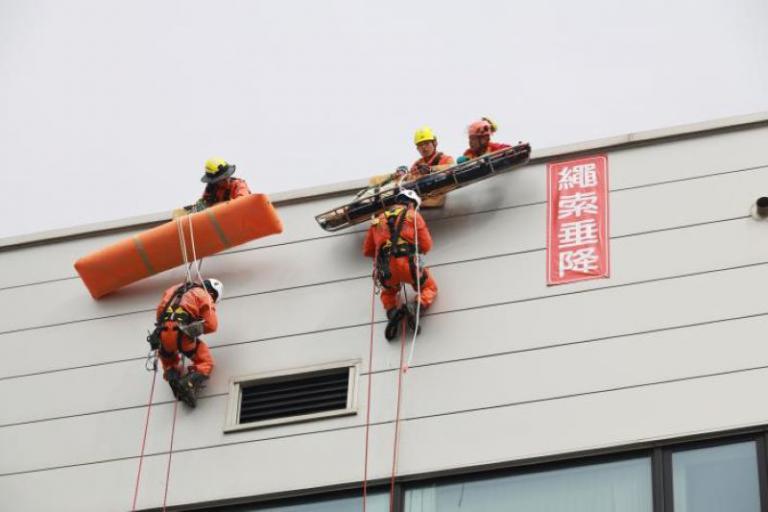 消防局說明,此次演習模擬廠區二樓因員工操作機台不慎引發火警,現場存放大量可燃物品,火勢迅速延燒並產生大量濃煙,且正值上班時間,廠內人員眾多,恐對人命與財產造成重大威脅,廠方隨即啟動自衛消防編組