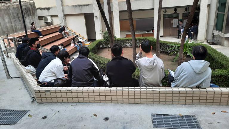 ▲考前應考生於小型劇場新設置階梯上做最後衝刺(圖/高師大提供)