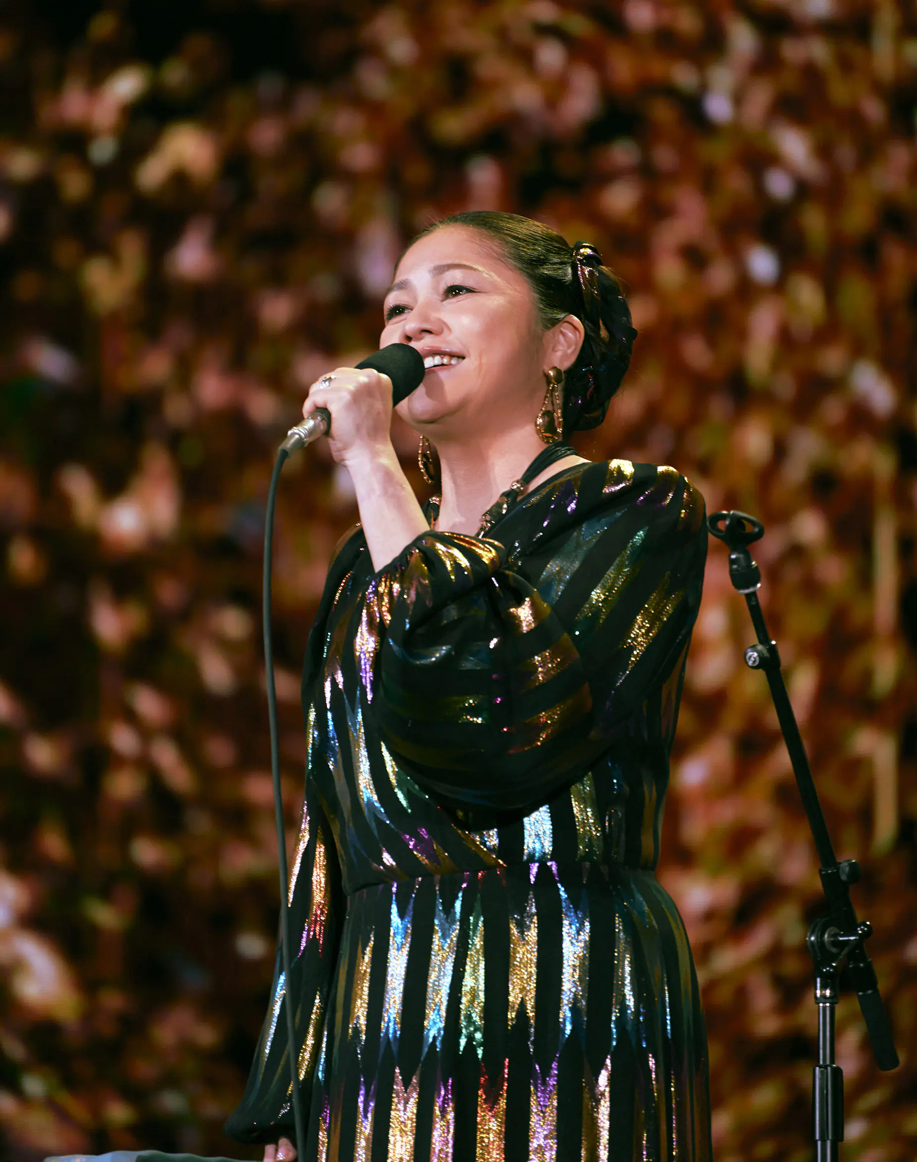 而當巨蛋燈光一暗,夏川里美再度現身登台,彈奏三味線唱著〈島唄〉拉開整場序幕,更以中日文交錯演唱鄧麗君(Teresa Teng)〈時の流れに身をまかせ〉(我只在乎你),純淨而溫柔的歌聲在大巨蛋空間中緩緩擴散,現場瞬間靜到只剩呼吸聲,不少觀眾紅著眼眶聽完整段,也替演唱會定下最安靜、卻最深刻的情感基調。