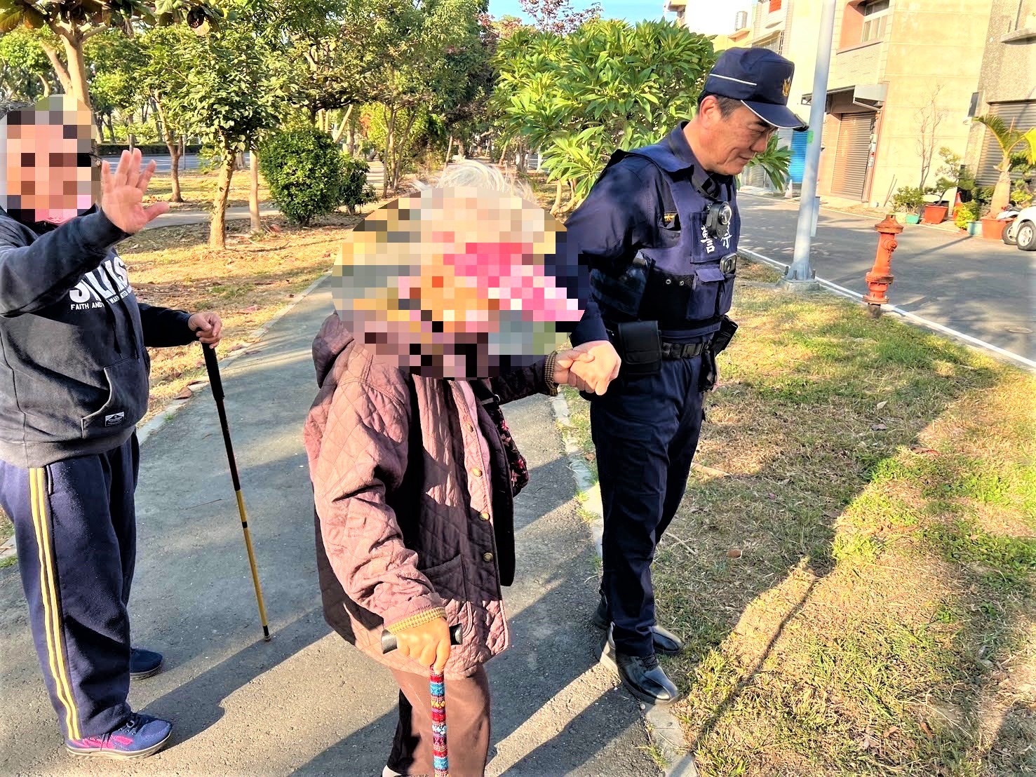 居服員獲知後也趕赴到場,感謝警方即時發現並協助照顧,在過程中李婦不斷向員警表示,只是想附近街道走走,沒想到會忘記回家的路,真的很不好意思;」員警則溫馨回應「沒關係,安全最重要」,一句簡單的話語,讓李嫗緊張的情緒逐漸緩和,頻頻點頭致謝,深受李嫗及在場居服員的感謝讚揚,員警確認李嫗安全無虞後才放心離去。