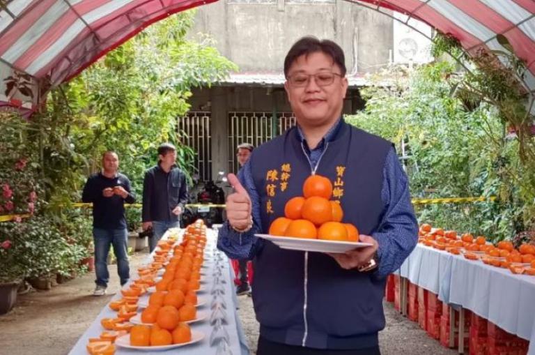 ▲農會總幹事陳信良說今年甜橘王甜度多達13.9度,是歷年來之最。(圖/記者蔣彤雲攝)