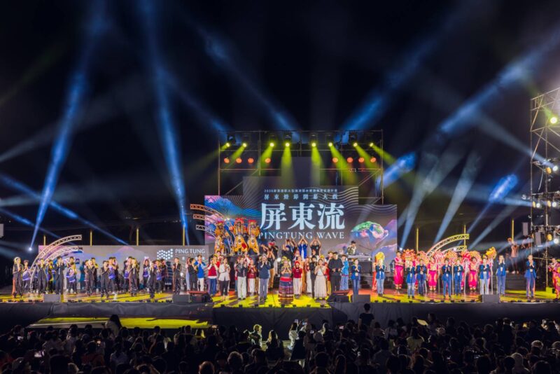 屏東縣長周春米表示,開幕大戲《屏東流》由導演林于竣執導,以八個章節串聯縣民公園地景,融合文化底蘊與城市能量,打造專屬屏東的大型戶外展演。演出由曾入圍葛萊美獎的三地門金曲歌后桑梅絹揭開序幕,小琉球歌手陳孟賢貫穿全場,並集結九天民俗技藝團、屏東戰隊、傳龍武學醒獅戰鼓藝術團夜光龍、潮和國小扯鈴隊等多組表演團隊,展現屏東多元族群文化與世代共創的豐沛能量。