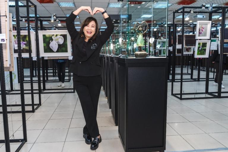 ▲龍寶建設董事長張麗莉以藝術創作者身分參與「1980愛的迴響」公益巡迴展,透過作品《乘願再來》傳遞柔韌、慈悲與生命滋養的力量。(圖/張老師基金會提供)