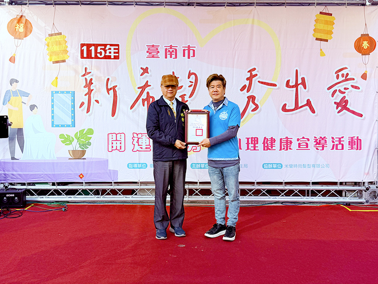 臺南市政府衛生局關懷市民身心健康暨迎接農曆春節即將到來,今日於該局林森辦公室一樓戶外廣場,舉辦115年「新希望,秀出愛」開運義剪暨心理健康宣導活動,透過多元表演、公益義剪及衛教宣導,期盼讓市民朋友從「頭」開始煥然一新,重拾自信,陪伴市民迎向嶄新的一年。
