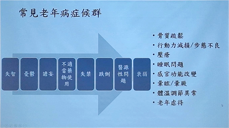 ▲跌倒、譫妄、尿失禁、憂鬱、行動力下降或衰弱等表現,統稱為「老年病症候群(Geriatric Syndrome)」。