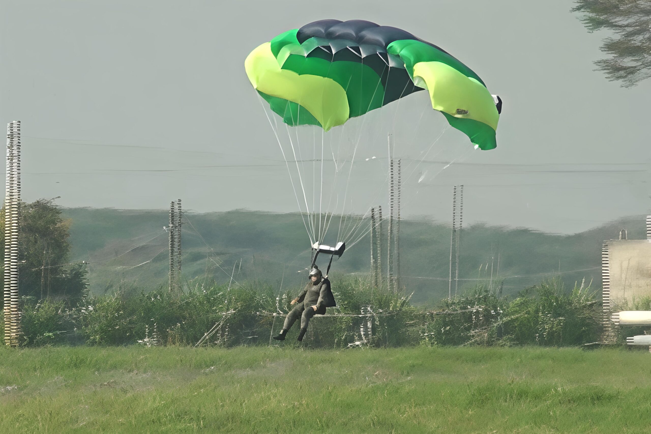為強化國軍高空滲透作戰能力並厚植專業師資能量,陸軍空降訓練中心今(29)日於屏東潮州空降場實施高空滲透跳傘訓練。傘教組教官率學員搭乘CH-47SD運輸直升機升空,分別自8,000英呎及10,000英呎高度躍出機艙,進行高空跳傘課目,過程嚴謹扎實。