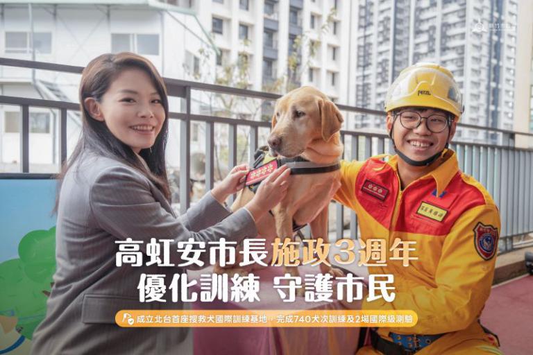 新竹市長高虹安上任三年,完成多項消防政策福利、專業技術躍升及全齡防災教育成果。高市長表示,「公共安全」是她施政的首要任務,市府不僅要當打火英雄最堅強的後盾,更要透過專業火災鑑定實驗室認證、國際級搜救犬訓練場地及校園全齡防災宣導,將新竹市打造為「安居科技城」。