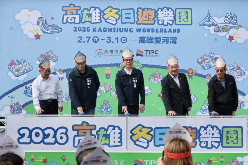 【今傳媒/記者李祖東報導】2026高雄冬日遊樂園即將登場!高雄市長陳其邁今(30)日頭戴活動主角日本知名IP「超人力霸王」頭套,偕臺灣港務公司總經理王錦榮、多位民意代表等貴賓共同進行啟動儀式,宣布這項歡樂洋溢的城市嘉年華活動將自2月7日起於愛河灣及高雄港16至18號碼頭正式登場。市長陳其邁親自開箱搶先並體驗多項新遊樂設施,開心地跟小朋友、高雄熊互動玩一波,現場也一一發送貼紙及氣球給小朋友,共同度過一個快樂的午後時光。