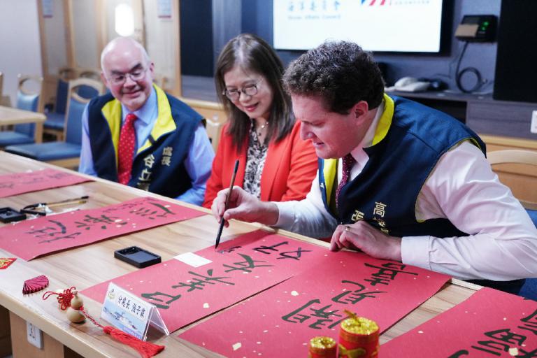馬年春節將至,為展現台美安全戰略合作及共同串聯印太和平的夥伴關係,海洋委員會主委管碧玲昨(30)日邀請美國在台協會(AIT)谷立言處長、AIT高雄分處張子霖分處長,共同登上海巡署4000噸級最大艦艇──雲林艦,透過揮毫春聯、包水餃等春節文化體驗,向全年無休守護國土的海巡同仁送上新春祝福,也象徵台美安全戰略及印太和平鎖鏈「好馬吉」的深厚友誼。這也是海巡署成立26年以來,首位AIT處長登上最大海巡艦,別具歷史意義。