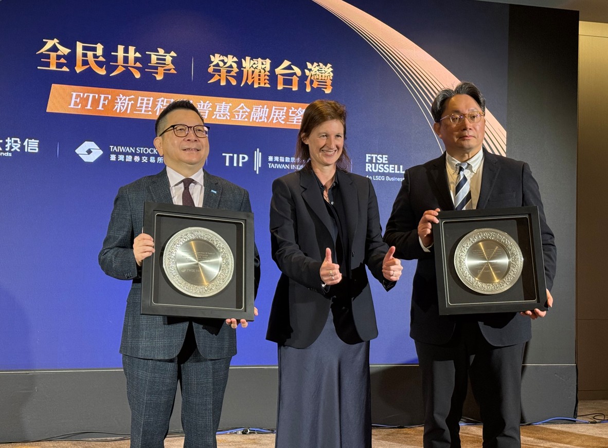 臺灣指數公司也扮演關鍵角色,2016年成立後,與FTSE Russell合作臺灣永續指數,為台灣第一檔綜合ESG指數,且已廣泛應用於政府基金投資指標、ETF、主動式基金、指數基金、指數期貨等商品,合計資產規模約1459 億元。2025年雙方合作更進一步延伸至多資產指數、聯名指數。