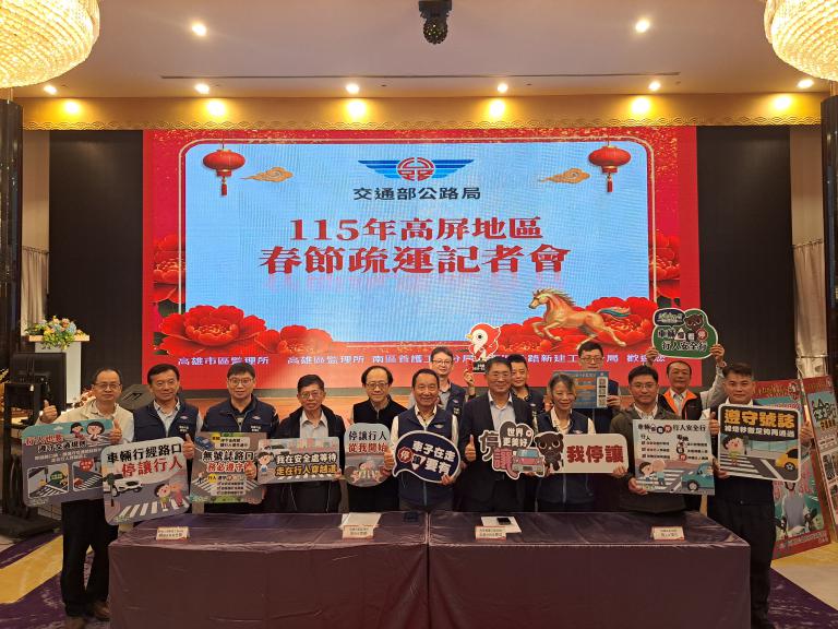 農曆春節腳步漸近,街頭巷尾洋溢著濃濃年味,今年更迎來長達 9 天的連續假期,返鄉團圓與走春踏青的旅遊人潮可望再創高峰。為讓民眾在歡度新年之際行得順、玩得安心,在「駿馬迎新春」的節慶氛圍下,高屏地區春節疏運全面啟動。高雄市區監理所攜手高雄區監理所、南區養護工程分局及南區公路新建工程分局,於今(2 月 3 日)共同舉辦「高屏地區春節疏運記者會」,提前為春節疏運工作做好萬全準備。