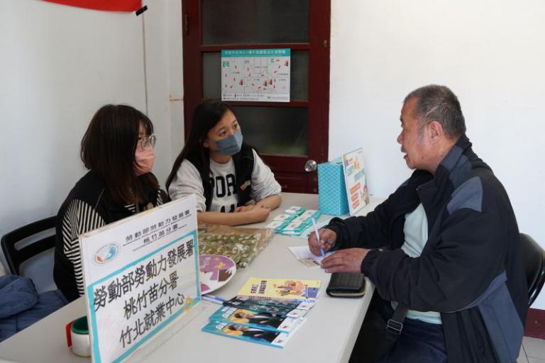 ▲竹北就業中心也設攤提供就業諮詢與媒合資訊,鼓勵有意願的朋友重返職場。(圖/記者蔣彤雲攝)