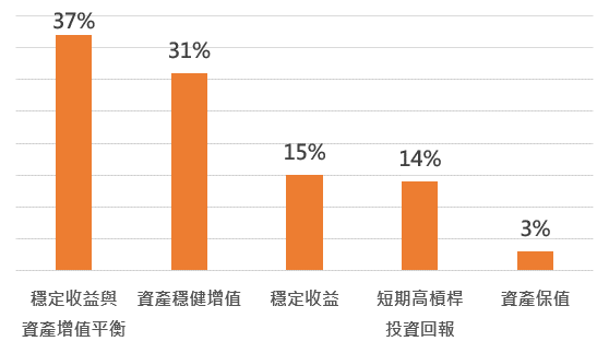 在理財目標方面,有37%的投資人希望在「穩定收益與資產增值」間取得平衡,31%以「資產穩健增值」為首要目標,另有15%偏好「穩定收益(配息)」,僅有14%追求「短期高槓桿投資回報」。整體而言,顯示多數民眾的理財觀念正朝向長期且紀律的方向。
