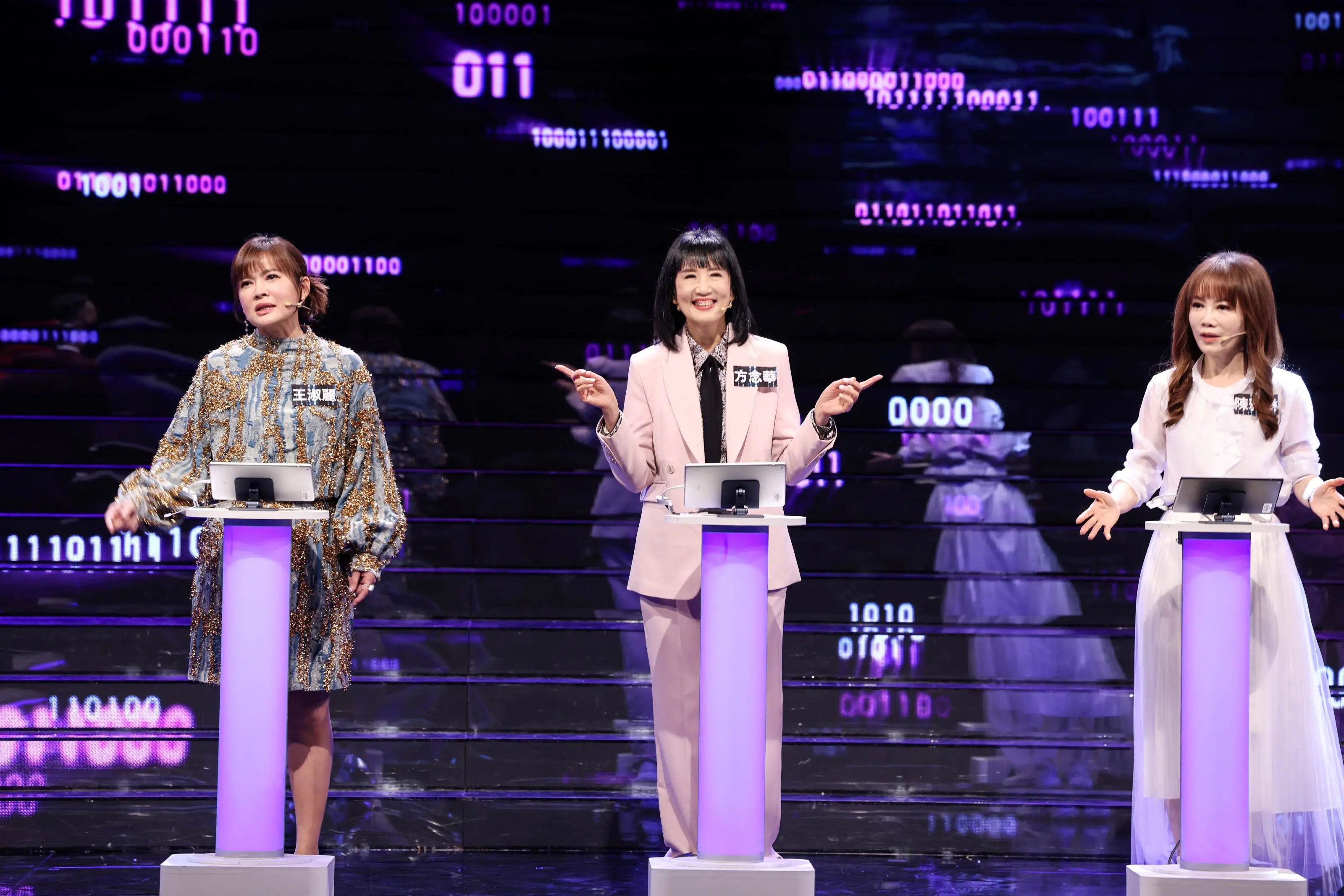 《哈!真相大白了》新年特別節目知名主播王淑麗(左起)方念華、陳雅琳同上節目,方念華頻頻答對露出開心表情    圖片提供:公共電視