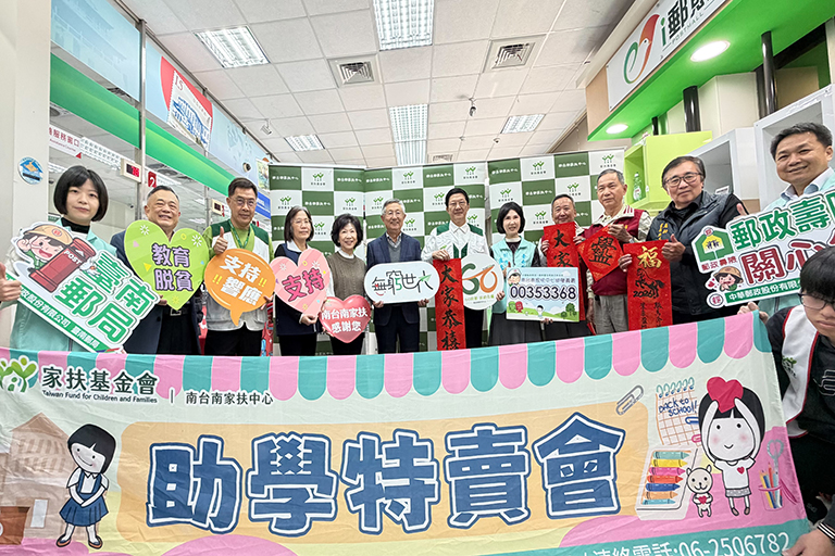 南家扶多年來於新學期前夕,持續推動「無窮世代~助學希望工程」,透過愛心特賣匯集社會資源,協助扶助家庭孩子籌措求學所需費用。2026年春季助學特賣會開幕記者會,於2月10日上午10點,在台南成功郵局儲匯股一樓大廳舉行,由南台南家扶扶幼委員會主委楊政達、中心主任李保良,及台南郵局與愛心廠商代表共同啟動,象徵社會各界齊心協力,為孩子築起通往未來的教育橋樑。