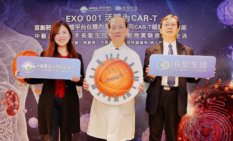 癌症長期位居國人十大死因之首,全球癌症患者中,實體腫瘤占比更超過九成,亦被視為 CAR-T 細胞治療最難突破的領域。中國醫藥大學附設醫院(簡稱中醫大附醫)今(10)日宣布,攜手長聖生技成功研發全球首創「EXO 001 靶向外泌體平台」,可直接在體內編程 T 細胞,生成具多靶向辨識能力的奈米抗體 CAR-T 細胞,於多項實體癌動物實驗中展現顯著療效,部分實驗更達癌細胞完全清除的成果,為末期實體癌治療帶來全新策略。
