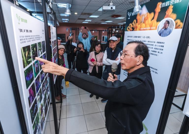 ▲生產力建設董事長張忠弘展出《花卉微觀密碼》系列攝影作品,以微觀視角捕捉路邊花草的生命韌性,呼應心理陪伴「看見與肯定」的核心精神。(圖/張老師基金會提供)