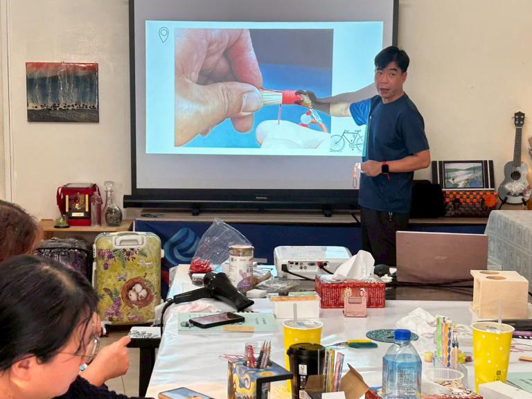 在最新的「多元藝術照護師」培訓行列中,出現了一位令人矚目的身影——擁有兩項非遺文化背景的樂齡核心講師陳秋敏老師。陳老師長期致力於傳統文化的推廣,這次她放下資深講師的身分,以學員的心態投入藝術照護的學習,為跨代傳承與高齡照護注入了更深厚的文化底蘊。她表示:「過去,我致力於保護和傳承非遺文化的技藝;但現在,我發現這些珍貴的文化遺產,正是療癒長者心靈最溫暖的力量。」