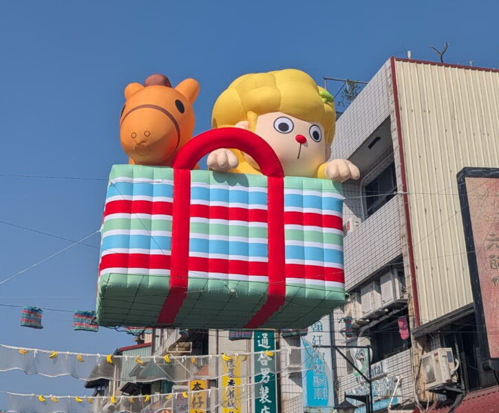 1. 入口意象「金價賀買」:呼應 2026 馬年,以金蕉枇與可愛小馬,一齊乘坐茄芷袋熱氣球,於老街入口處熱情迎賓,取諧音「金好買」,祝福來到老街的遊客都能滿載而歸。