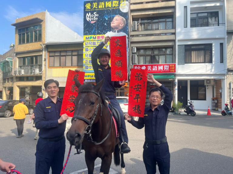 為迎接馬年到來,竹東分局今(12)日舉辦「揮毫送春聯」活動,邀請書法名家林國山、林司晴及宋兆賢等老師現場揮毫,致贈民眾應景春聯,活動中結合防詐騙及交通安全宣導,讓民眾在感受年節喜氣的同時,也能將「
