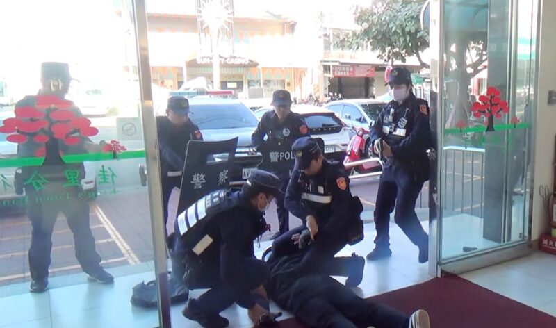此次演練由佳里警分局偵查隊吳偵查佐扮演持槍歹徒,全副武裝頭戴安全帽,進入銀行內挾持洽公民眾,威脅行員交出現金後騎乘機車逃逸。為求逼真,警方於現場圍起封鎖線,並出動鑑識人員採證,現場行員及民眾直呼宛如真實案發現場。後續攔截圍捕行動亦不因演練而鬆懈,通報勤務指揮中心執行攔圍捕,動員轄區佳里、西港派出所員警荷槍實彈,順利於現場攔獲歹徒,演練圓滿落幕。