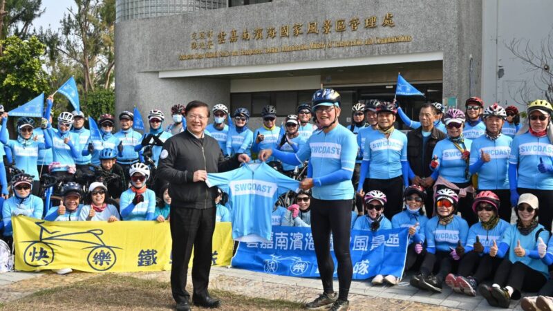 【今傳媒/記者張淑慧 報導】農曆春節將至,台南北門迎來朝氣蓬勃的景象。2月13日,一群退休人士共70位成員,在雲嘉南濱海國家風景區管理處徐振能處長致贈車衣儀式下,正式成立「快樂車隊」。隊伍中最受矚目的焦點,是高齡83歲人稱「一哥」的精神領袖,展現驚人的活力。他表示,年齡只是一個數字,快樂才是重點。從佳里糖廠退休後才開始接觸自行車運動,至今已完成兩次單車環島,成為車友眼中的傳奇人物。這群「不老騎士」具體實踐樂活精神,感受雲嘉南濱海鳥類、潮間帶生態、鹽業文化、王爺信仰的豐富底蘊。