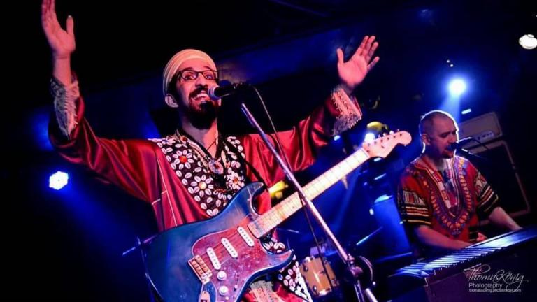 ▲摩洛哥樂團「Morocco‘N’Roll」則以北非傳統旋律為基礎,結合爵士樂的即興精神與多變節奏,在音符流轉間交織出跨文化融合的音樂風貌。(圖╱彰化縣政府提供)
