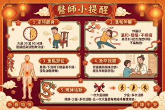洪正君醫師提醒,進行伸展時應配合自然呼吸,動作以舒適為原則,不宜勉強或追求標準姿勢。他建議每坐約三十分鐘至一小時,即起身活動數分鐘,長期規律進行,對預防久坐相關不適更具效果。