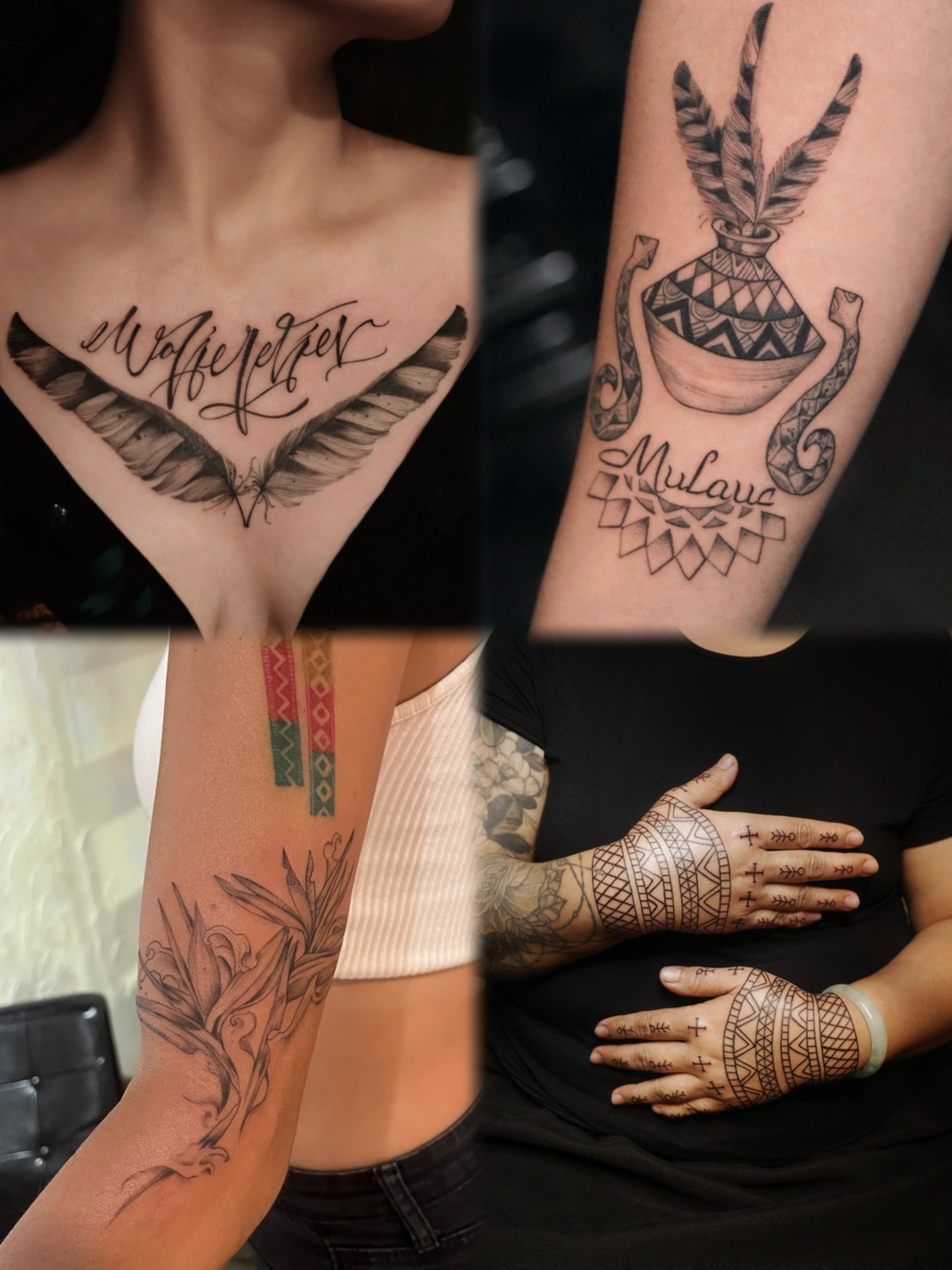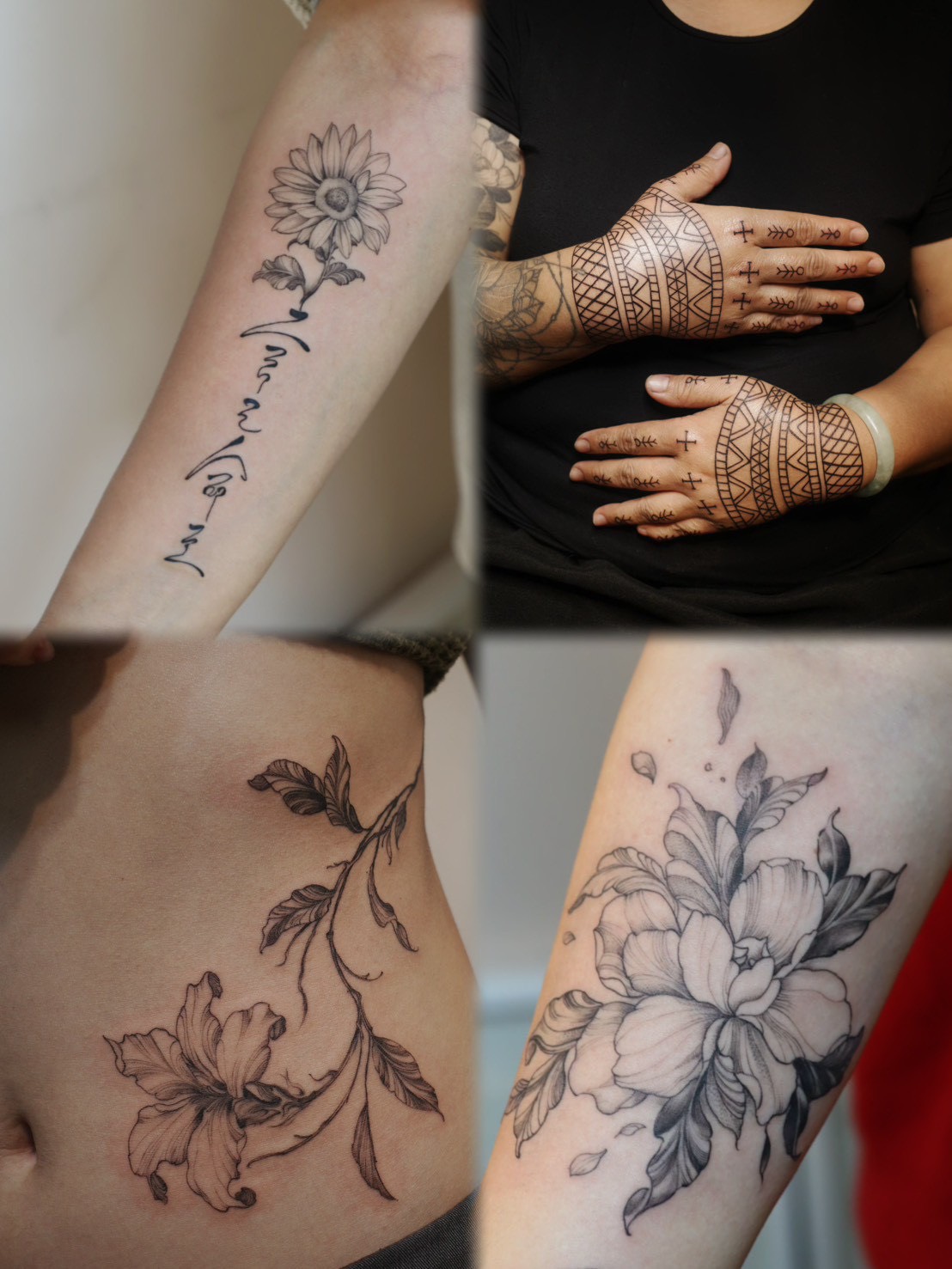 不僅如此,對於來找她的,更有不少原住民,對於部落的部落圖騰,她會去專研,甚至她擅長刺花朵,她覺得每朵花都是柔軟的且有生命力綻放,想把最好的盛開花朵刺在身上,例如百合花在台灣原住民文化中,特別是魯凱族與排灣族,象徵神聖、高貴、純潔與榮耀。作為魯凱族「族花」,它代表男子英勇狩獵(功勳)與女子貞潔禮儀,僅有具備資格者才可佩戴。讓花刺在身上,讓每個來的人,都可以去連結自己的文化,相當有意義。