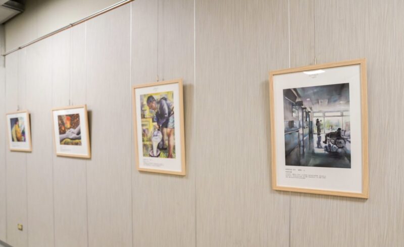 另外,醫療團隊組腫瘤科護理師芊芊,主題《雙向療癒,傳遞愛》,畫中護理師握住病患的手,她希望能透過自己的作品,給正在經歷癌症折磨的病人帶來一絲安慰和溫暖,她也在畫作說明寫下對病友們的支持:「身心的難受,好苦。我不太說加油,更喜歡藉由非語言在無聲的交流中,療癒著你我,而這些療癒會化為一道道暖流,持續流動於心房間。我相信你,而我也相信我自己。」
