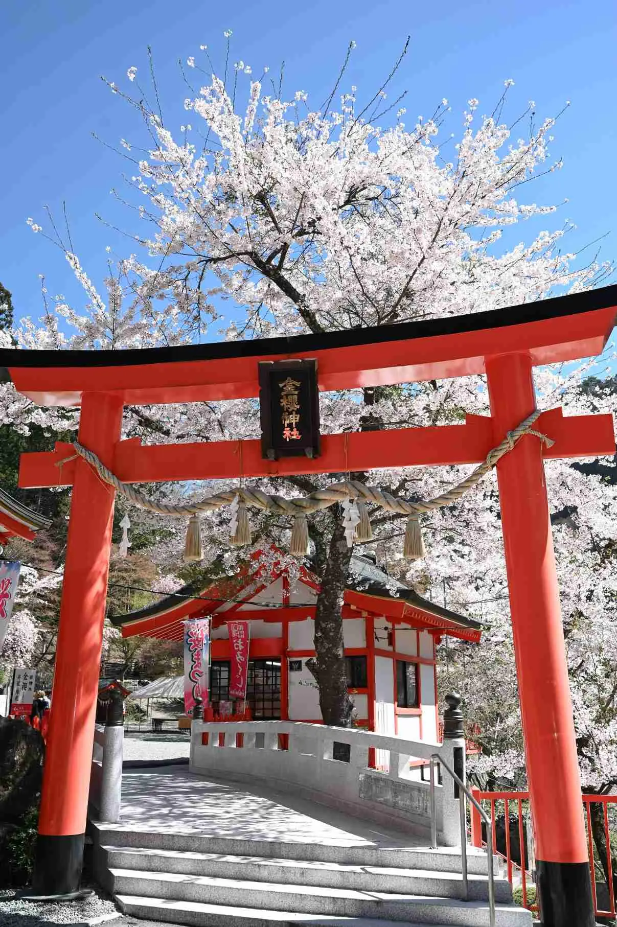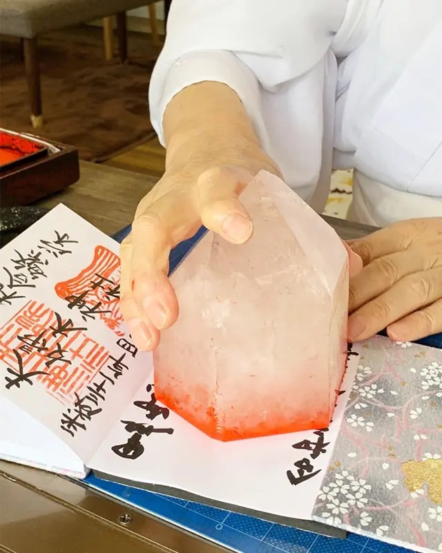 隨後走訪鬱金櫻的賞櫻名所「金櫻神社」,神殿供奉著水晶纏尾的昇降龍,人們相信可開金運及除厄,還能收集水晶的御朱印。