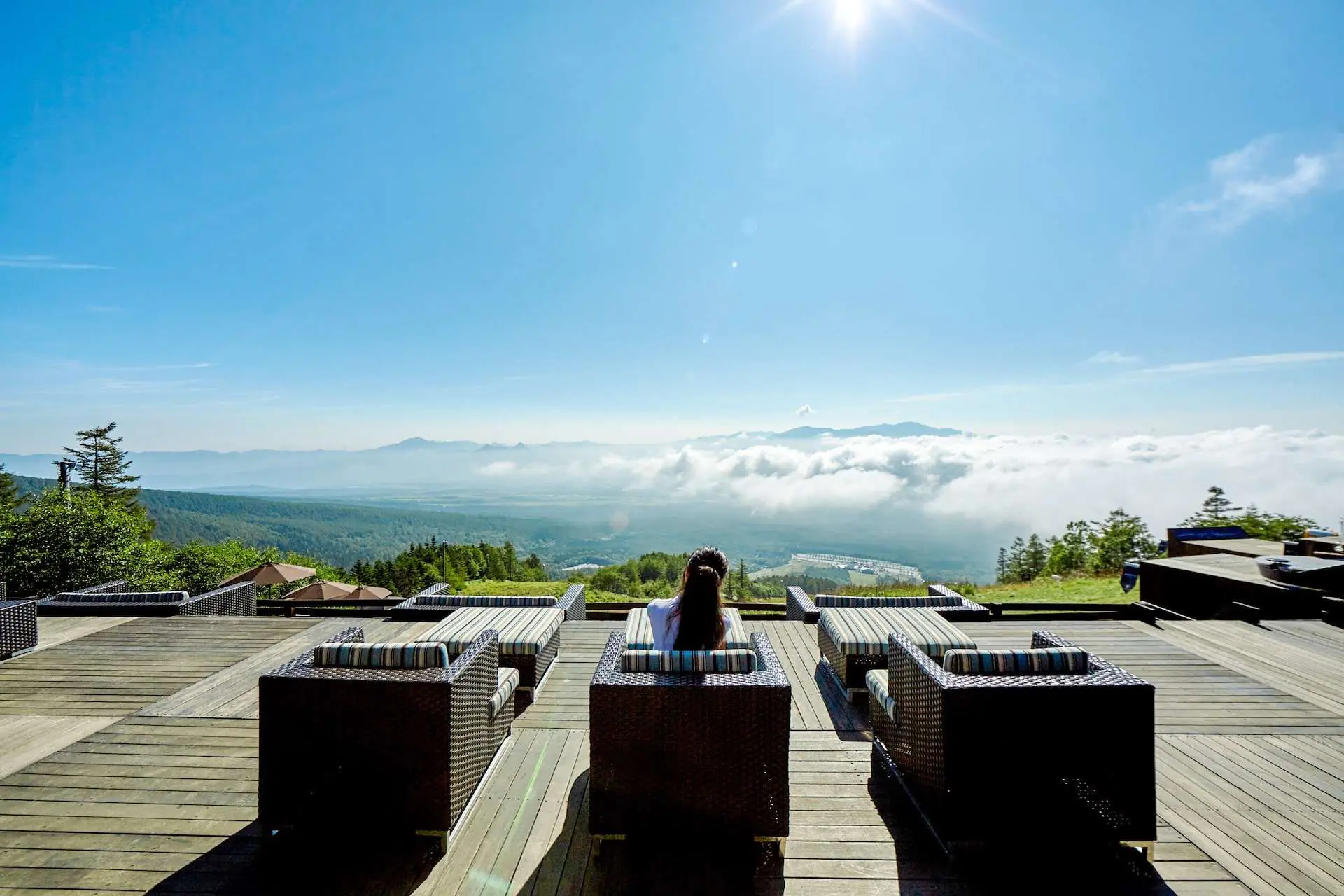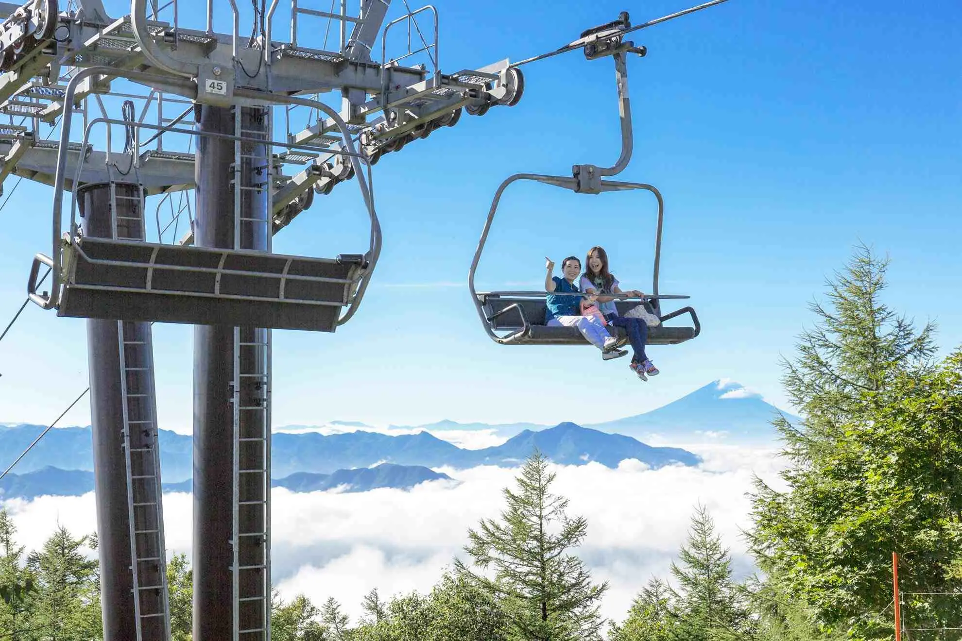 下午搭乘清里高原全景纜車,登上海拔 1,900 公尺高的「清里露台」(清里terrace),倚在高空觀景台舒適的沙發觀賞八岳連峰、南阿爾卑斯山及富士山優美山形。夏天清里露台除了賞景,還能玩「G-kart」(無引擎的重力卡丁車);冬季則化身為滑雪場,是滑雪、玩雪、賞雪人氣勝地。