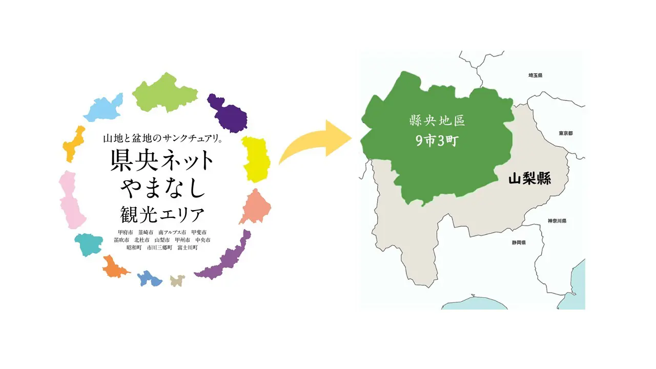 這片廣闊的區域由 12 個市町村構成,包括環繞山梨縣中央的甲府盆地的甲府市、北杜市、南阿爾卑斯市及富士川町等,蘊藏著獨特的自然風光與悠遠的人文歷史,值得深度探訪。
