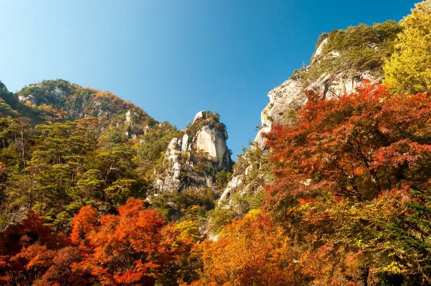 上午離開飯店,前往被譽為「日本第一美溪谷」的「昇仙峽」,漫步昇仙峽遊步道,可盡情欣賞奇石怪岩構成的壯麗峽谷景觀。尤其秋季時紅黃交錯的楓葉華麗層疊,點綴巍峨岩壁,吸引絡繹不絕的賞景人潮,搭乘昇仙峽纜車前往山頂,可將富士山及群山的宏偉景觀盡收眼底。