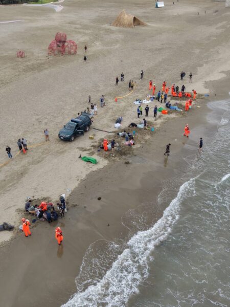 海保署強調,正因跨單位合作與現場人員不懈努力,才能讓這些海洋生物順利返回海洋。若民眾發現鯨豚擱淺,請立即撥打「118」通報海巡署,由專業人員前往處理。