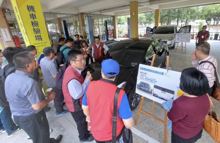 ▲現場進行實車檢測示範,展示隔熱紙可見光透過率量測方式。(圖/高雄市區監理所提供)