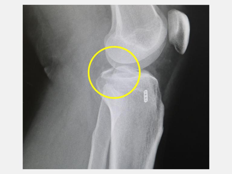 台中一位28歲黃先生在騎機車上班途中發生車禍,左腳膝蓋又腫又痛,不只躺在地上爬不起來,甚至連膝蓋彎曲都有困難,由救護車送到仁愛長庚合作聯盟醫院(大里仁愛醫院)的急診室,X光檢查發現他左腳膝關節骨折,經進一步電腦斷層掃描後顯示是脛骨後十字韌帶撕脫性骨折(posterior cruciate ligament avulsion fracture)。運動醫學中心徐振恆醫師安排微創關節鏡輔助復位固定手術後,黃先生隔天就開始下床走路,並進行復健運動,2個月之後已經回到正常生活。