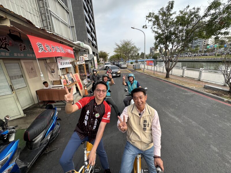 議員初選最後衝刺,立委許智傑25日展現鳳山大學長風範,跨派系相挺參與初選的議員林智鴻,不只親自騎腳踏車掃街、拍影片,連看板都即將「究極合體」。許智傑指出自己「重情重義」,過去林智鴻挺他選立委連任,去年也支持他選市長,這次民進黨議會拚過半,他一定要幫助林智鴻也要初選、大選都過關。