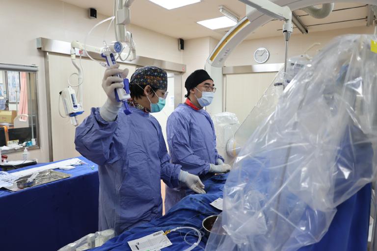 王彥翔說,目前臨床上常使用旋磨切除術將鈣化斑塊磨除,但較深層的鈣化組織還是有困難,並有造成血管破裂及損傷的風險,因此醫療團隊和病人家屬討論後,決定使用最新的IVL技術,這項技術的原理類似打腎結石,利用震波氣球貼近血管壁發出超聲壓力波精準擊碎堅硬的鈣化斑塊,而不傷及血管組織。在震碎「頑石」後,醫療團隊再以氣球擴張術撐開血管,成功植入3支支架,讓血流恢復暢通。