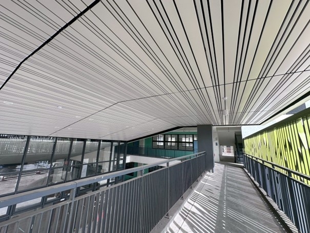 圖書資訊大樓建築設計導入自然採光、節能設備及綠建築理念,兼顧空間舒適性與能源使用效率,營造兼具現代化與永續精神的學習場域,提供學生更友善且多元的閱讀與研究環境。