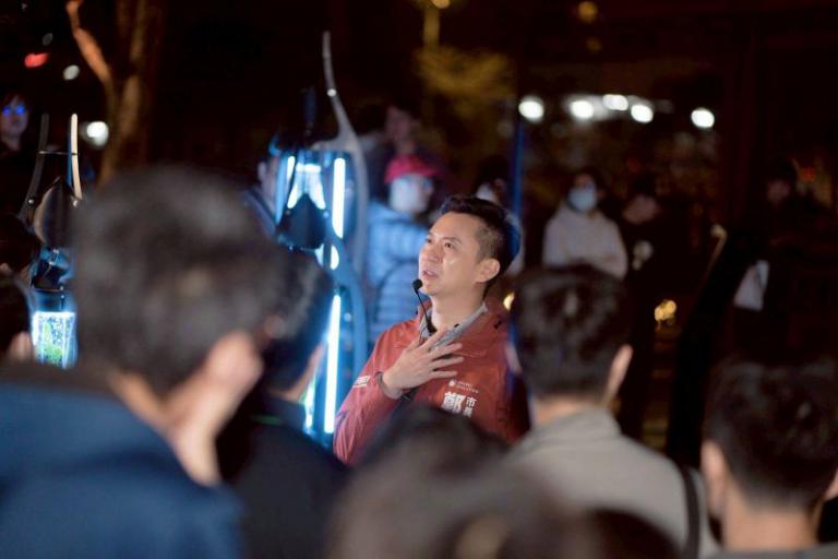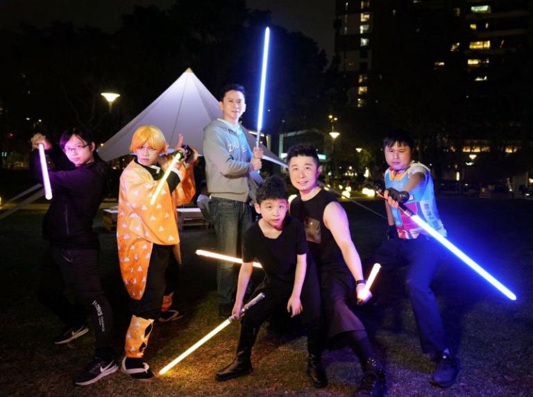 ▲鄭朝方市長與光劍藝術家們共同以律動方式帶來全新市民體驗。(圖/記者蔣彤雲攝)