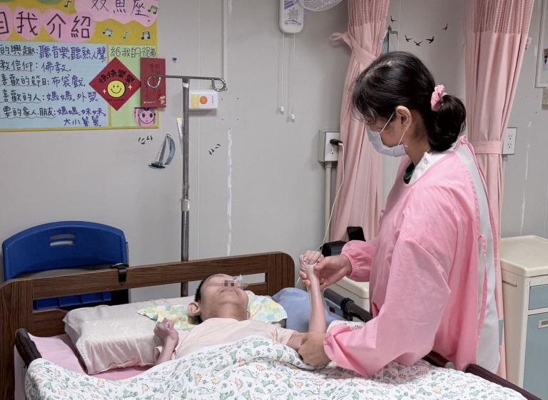 ▲台中32歲的廖先生因早產導致腦性麻痺,長期呈近似植物人狀態至今,照護重擔全落在母親身上,所幸廖先生去年順利入住創世台中院,創世的支持讓長期承擔照顧責任的廖母不再孤軍奮戰。(圖╱創世基金會提供)
