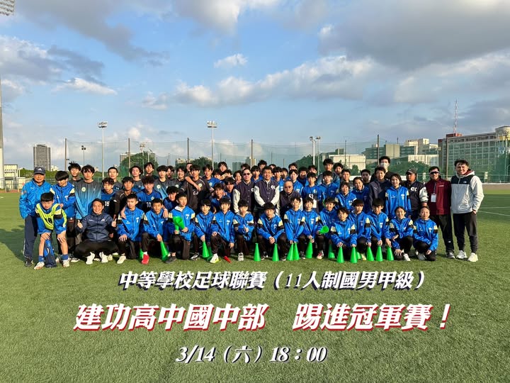 新竹市立建功高中國中部足球校隊在臉書中貼文,回顧3/12四強決賽中,面對實力堅強的勁敵民族實中,場上足球隊員向所有人展現了「永不放棄的建功魂」,在比賽補時倒數的最後3分鐘,少打1人落後2分情況下,小將們頂住巨大的落後壓力,咬緊牙關連續踢進兩球,將比數追平,把比賽逼進延長賽,那一刻,場上球員與場邊家長組成的啦啦隊無不血液沸騰。