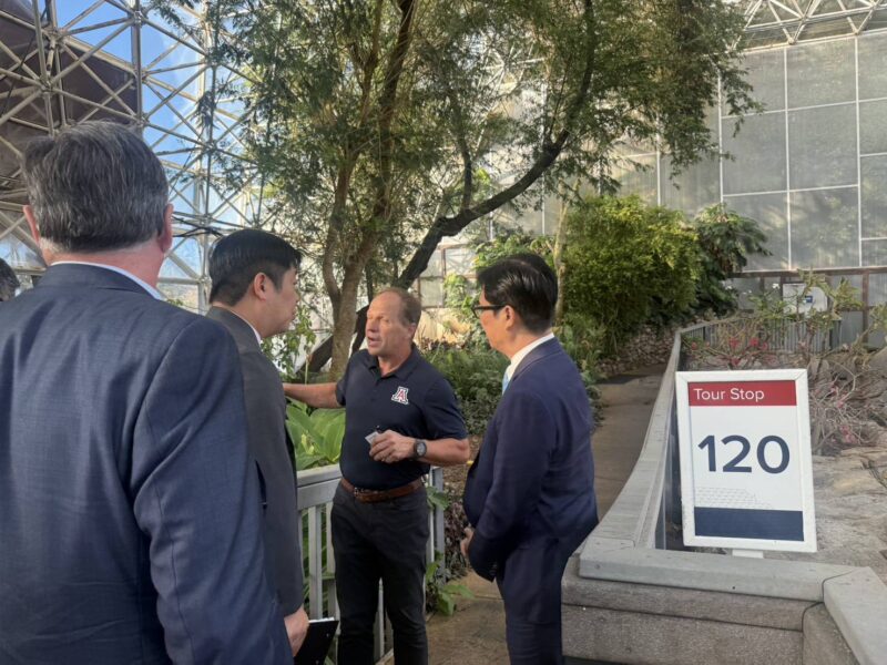 高雄市長陳其邁近日率團訪問美國,除進行一系列半導體與經貿交流行程外,並前往位於亞利桑那州的全球知名封閉式生態系統研究設施「Biosphere 2(生物圈2號)」參訪,在亞利桑那大學副校長Tomás Díaz de la Rubia、設施主要負責人John Adams的介紹下,訪團不只借鏡其在生態研究與環境教育經驗,作為高雄推動城市生物多樣性、生態教育與觀光的重要參考,更充分了解到氣候變遷的情境下,二氧化碳濃度、氣溫等對於生態系統的重大影響。