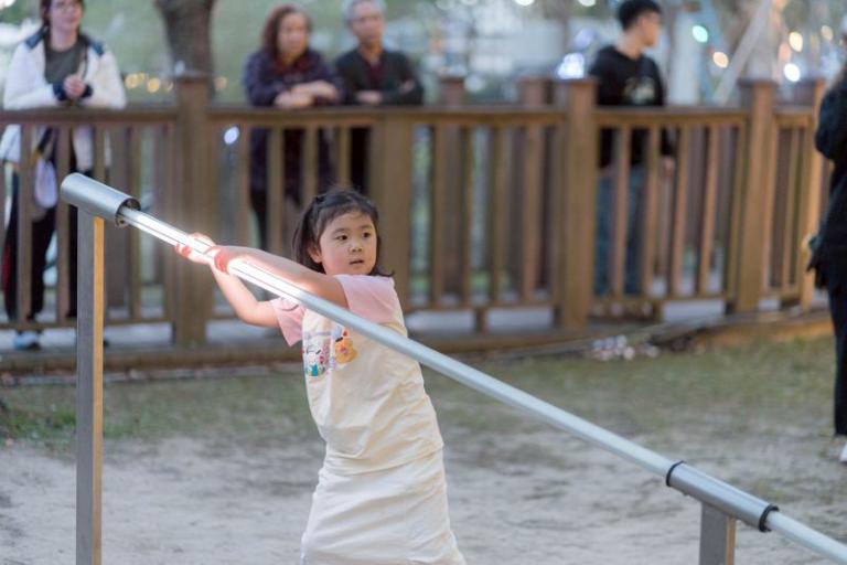 在互動體驗方面,今年光節特別強調全齡參與,人氣互動裝置「水漂」結合感測科技與聲光效果,讓民眾透過簡單的互動動作,在水面與光影之間創造變化,成為展區中最受歡迎的裝置之一,閉幕當天舉辦的「雙人水漂大賽」,更吸引多組長輩與晚輩一同參與,在科技與藝術交織的空間裡留下跨世代互動的溫馨畫面。