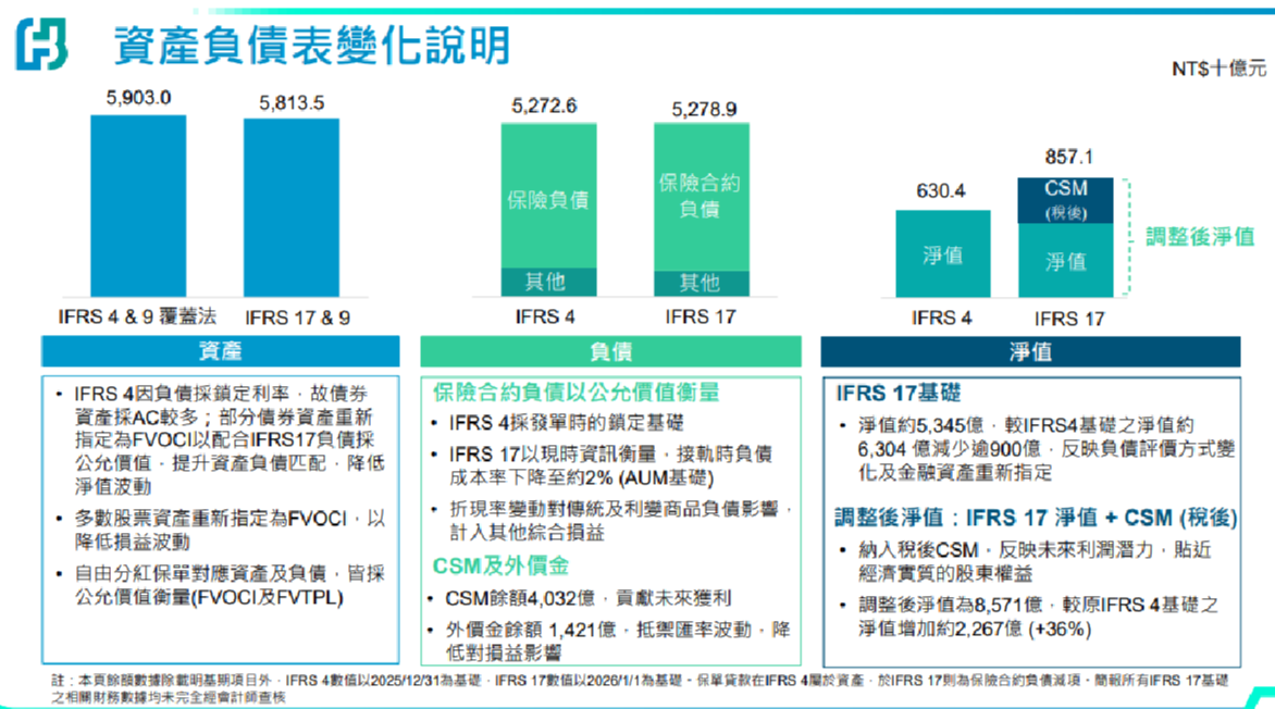 2025年稅後淨利若採IFRS 17基礎計算,約600億,與原來的(IFRS 4)基礎的約627億接近。