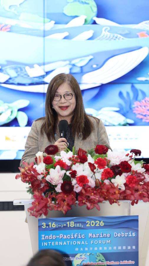 ▲「印太海洋廢棄物治理國際論壇」管碧玲致詞呼籲:放下政治注目海洋。(圖/海委會提供)