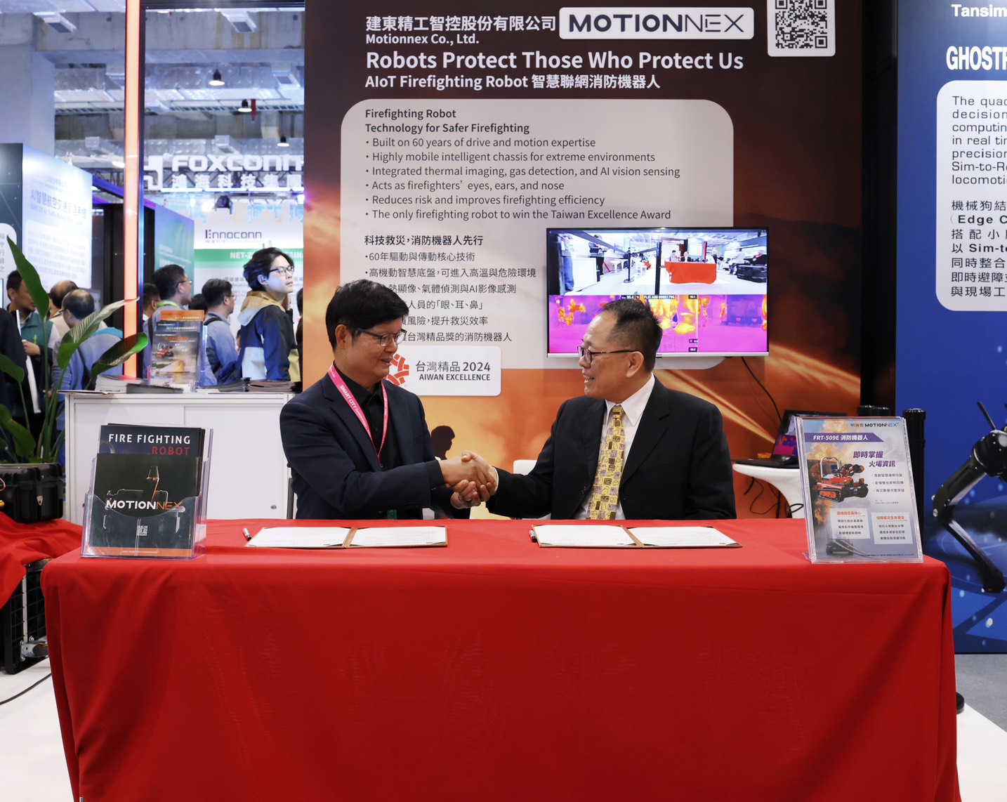 同時展覽期間,與台灣智慧機器人大廠:建東精工簽訂MOU,合作「智慧停車場安防巡檢機器人」,針對電動車防災預防、停車場創新應用,訂定新一代的標準。